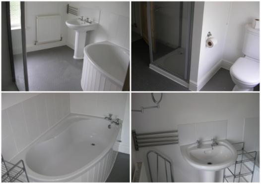 Extra downstairs loo with main bathroom upstairs with corner bath and separate shower cubicle.
